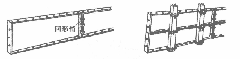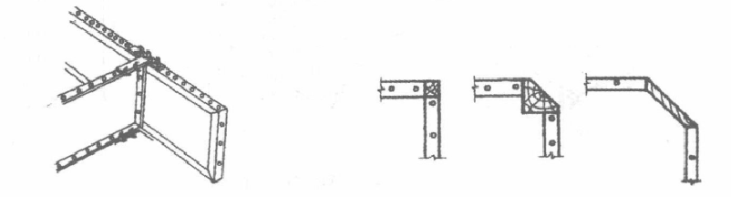 圖5一51橋梁模板的T形連接 圖5一52L形內(nèi)橋梁模板連接