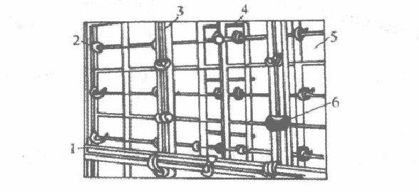 圖5一49橋梁模板的長(zhǎng)向連接 圖5一50側(cè)橋梁模板加高連接 3。T形連接 形連接主要在直角連接處、_h下兩邊和T字鐵用回形銷扣緊,如圖5-51所示。 4。轉(zhuǎn)角連接 在混凝土墻、條形基礎(chǔ)、水池或現(xiàn)澆的側(cè)板拐角處,常用這種方法連接。內(nèi)膜板轉(zhuǎn)角用木方或橋梁模板連接,如圖5一1所示;外橋梁模板轉(zhuǎn)角以木方或角鋼用回形銷或釘連接,如圖5一i所示。 5。板同木楞連接 橋梁模板需設(shè)穿墻栓時(shí),鋼橋梁模板可與木板拼裝,板同木楞用鐵釘、螺栓連接,如圖5一54所示。 6.大塊鋼橋梁模板的組裝人塊鋼橋梁模板的組裝,相鄰橋梁模板的邊肋川U形卜和if形插銷連接,加固橋梁模板的縱橫連桿用鉤頭螺栓和扣件連接裝位置,注意熬個(gè)拼接版的平救度組裝時(shí),要考慮其他附件和預(yù)埋件的安如圖5一- r所示。